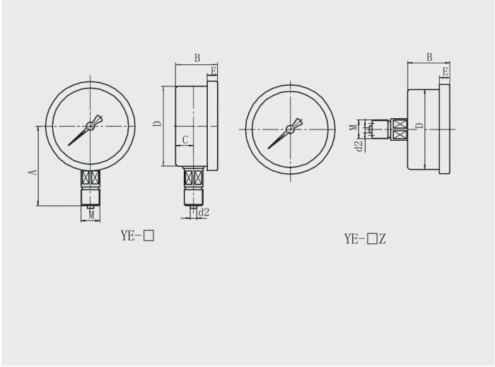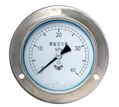 YE-100軸向帶邊膜盒壓力表又稱微壓表。適用于測量無爆炸危險、不結晶、不凝固,以及對銅和銅合金無腐蝕作用的液體、氣體或蒸汽的低微壓力。